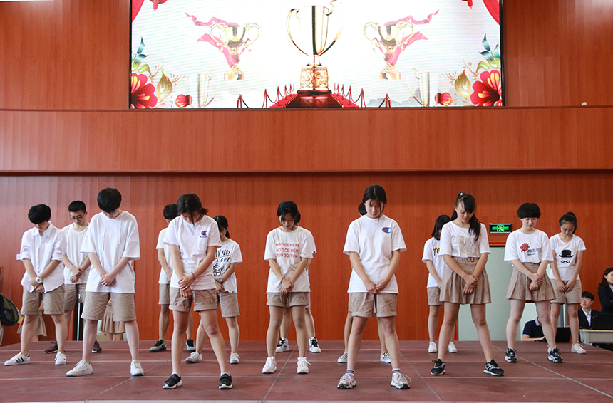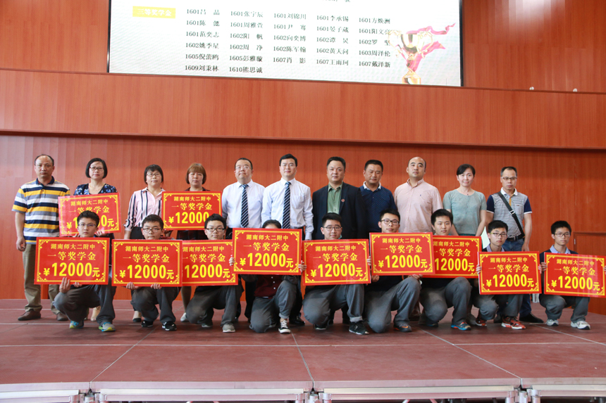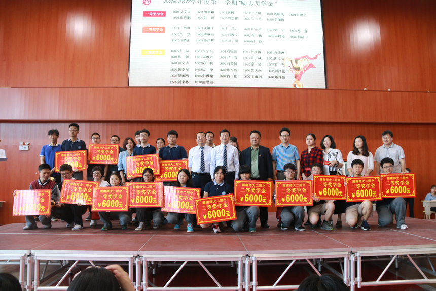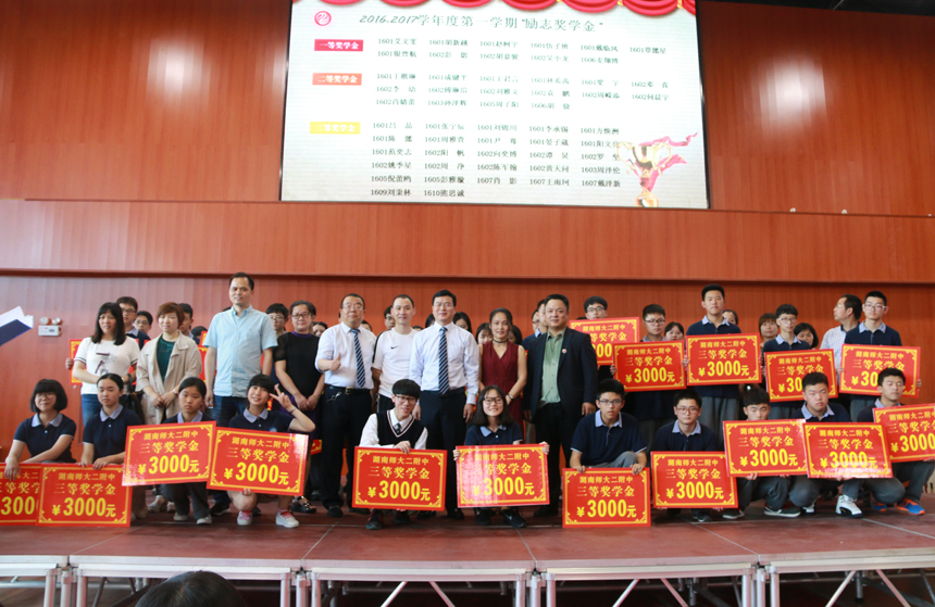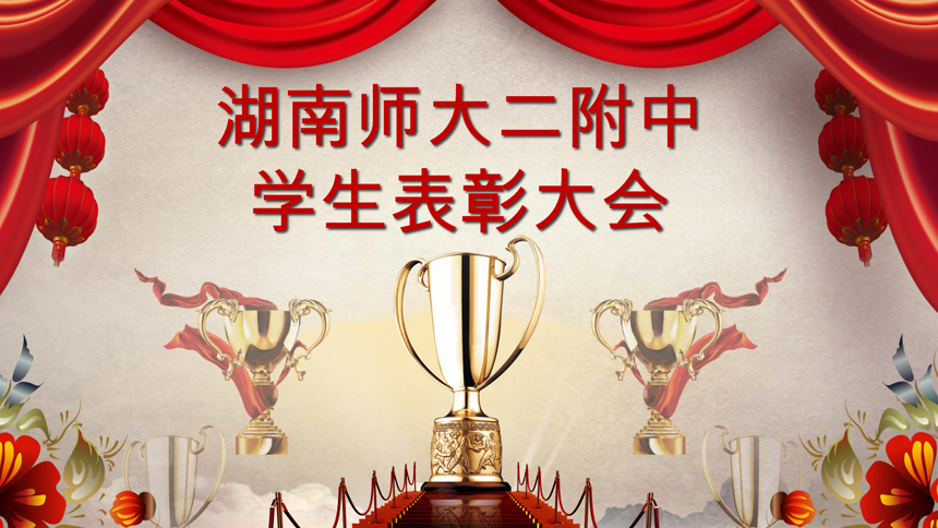 由我校李伊老师、吴谋杏老师编排,我校学生表演的歌舞《青春修炼手册》拉开了学生表彰大会的序幕,学生双语主持宣布表彰大会正式开始。庄严肃穆的国歌声响彻整个会场,即将被表彰的同学们更是心情澎湃。学生处任明副主任宣布了表彰学生名单,全体师生对获得奖学金的同学表示祝贺,同时我校还评选出了学习之星、单科学习标兵、进步之星、礼仪之星、文体之星、环保之星、友爱之星、优秀团员、优秀学生干部、优秀寄宿生进行了表彰。随后任明副主任宣布了校外获奖名单和组织,校家委会黄爱民主任宣布了分级培训先进个人和组织,并进行颁奖。表彰大会在学生诗歌朗诵和改编歌曲《师大二附中的日子》的和谐旋律中落下帷幕。
