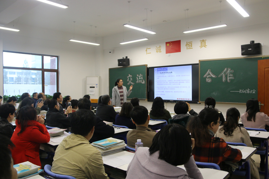 年级家长会上,张胜利校长做了热情洋溢的讲话,代表学校感谢家长对学校工作的大力支持,就学校小班制、寄宿制、人生规划与导师团队跟踪制、共享名校资源、学校特色课程等的办学设想及落实情况向全体家长作了全面汇报;并向家长们提出了怎样教育孩子的期望和建议,希望家长加强与学校、老师、子女的理性沟通,形成教育的合力,希望家长为了教育孩子而提升和完善自己,以身作则鼓励支持孩子成为最好的自己,与孩子共同成长。
