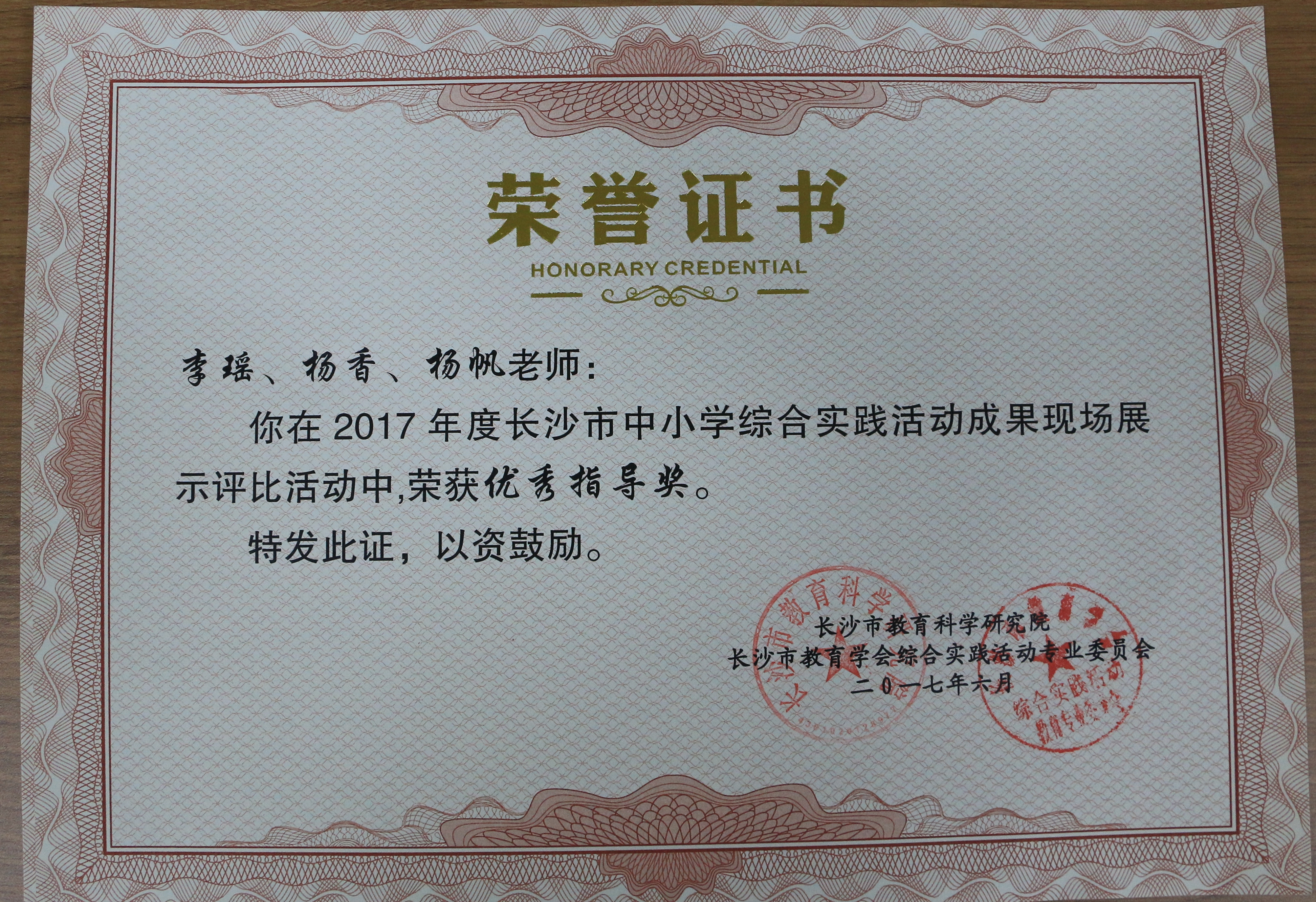 【喜报:李瑶、杨香和杨帆老师在长沙市综合实践活动现场成果展示中荣获优秀