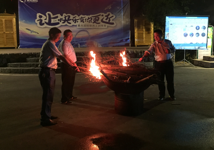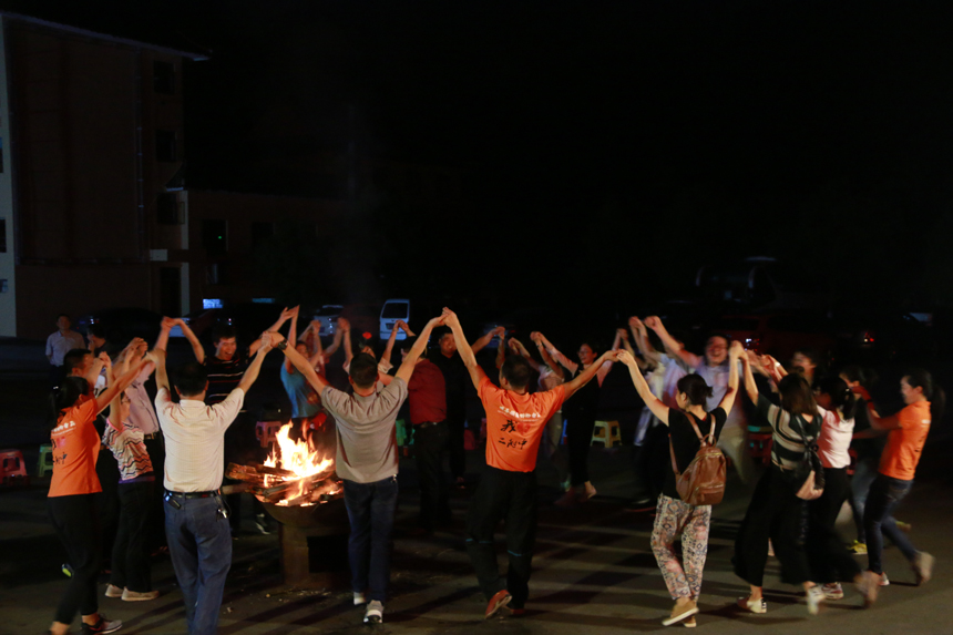 20日下午4点半,教师们从学校出发前往石燕湖,一路上欢歌笑语、其乐融融。晚上的篝火晚会,大家唱歌跳舞、欢聚一堂。21日,依次开展了开营破冰、急速传真、真人CS、夺宝奇兵、龙舟竞渡等素质拓展活动。