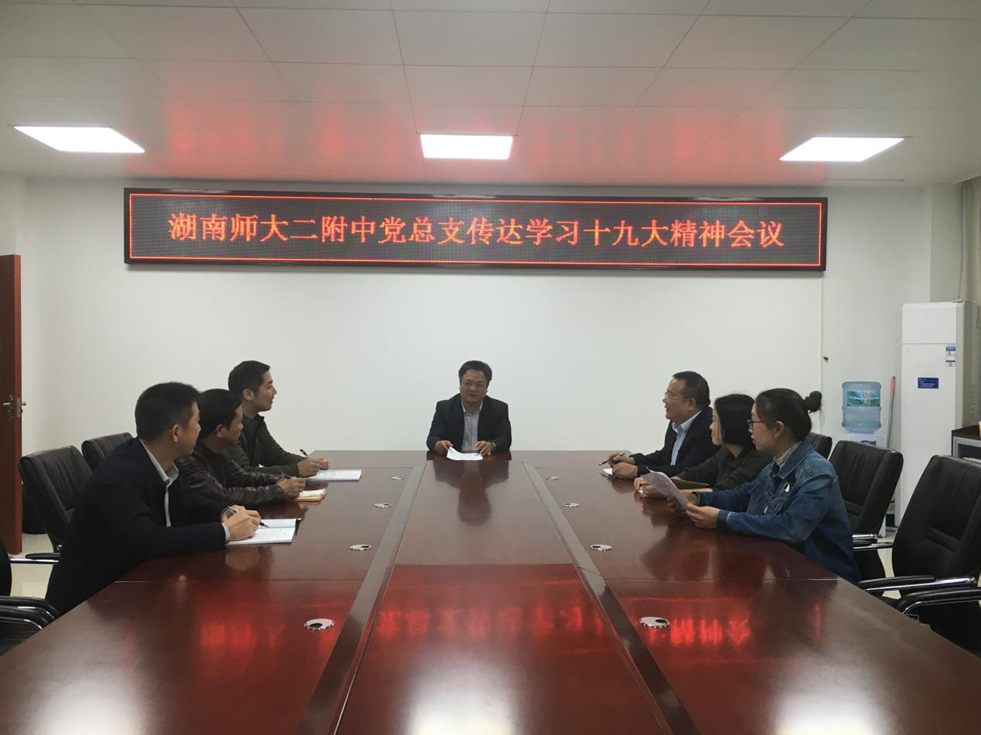 11月3日下午,我校党总支委员会在诚正楼二楼会议室召开传达学习党的“十九大”精神专题会议。学校党总支书记肖荣同志主持会议,全体党总支委员参加学习。