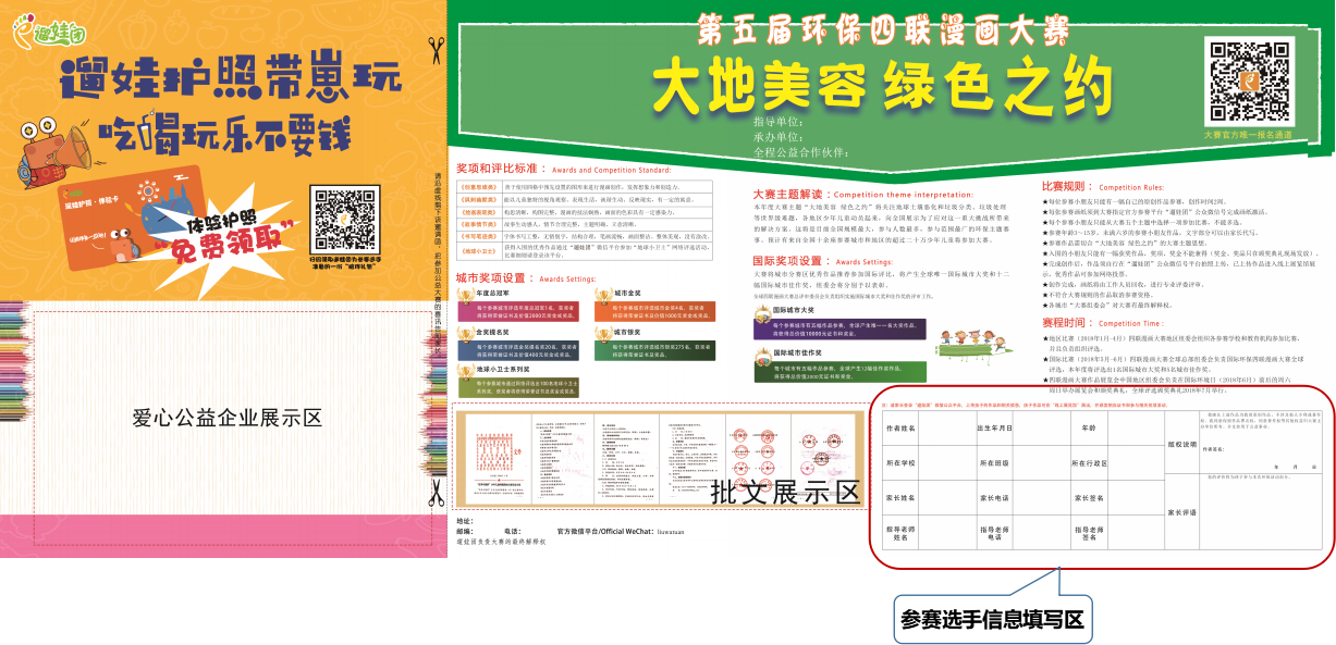 4、参赛选手必须拥有健康正确的社会价值观,遵守国家相关法律法规,监护人对其作品及言论负有监督和法律责任;参赛选手具有一定环保公益意识,家长主动引导,自愿参加环保公益赛事,并自愿积极主动参与公益环保理念传播。